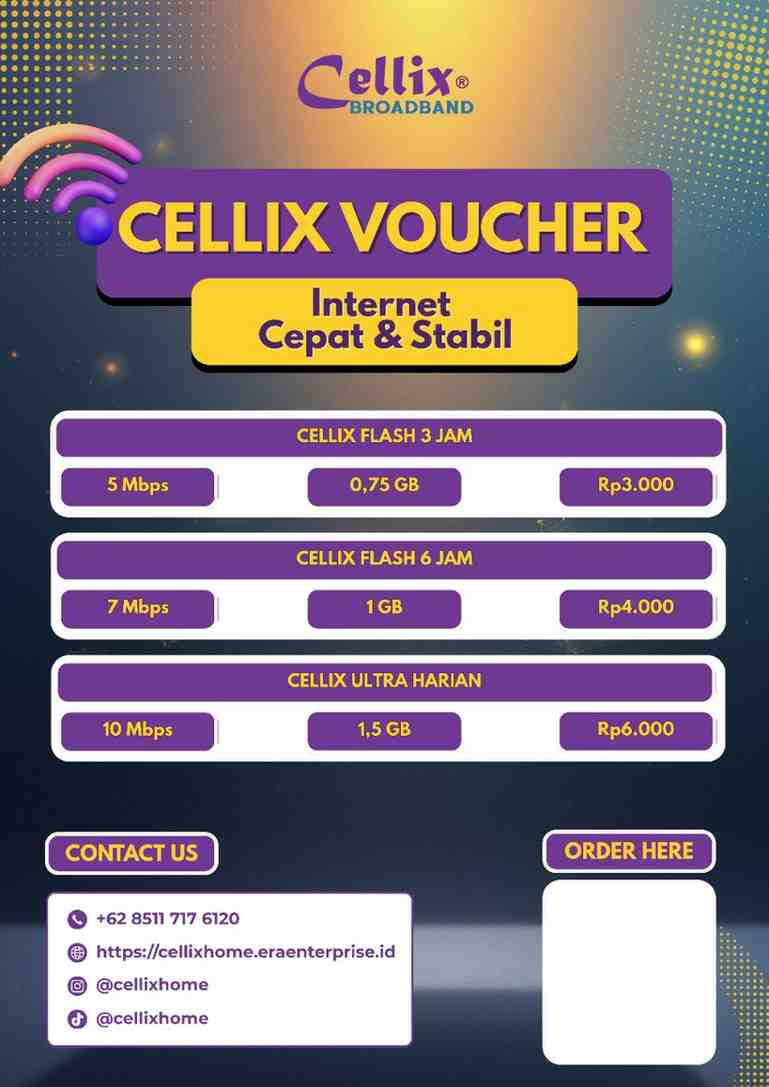 Tunggu apa lagi? Jangan biarkan aktivitas Anda terhambat gara-gara putus koneksi. Beli dan aktifkan voucher Cellix Flash sekarang juga! Hubungi admin kami melalui WhatsApp Fast Response Cellix untuk mendapatkan kode voucher-nya dalam hitungan detik.